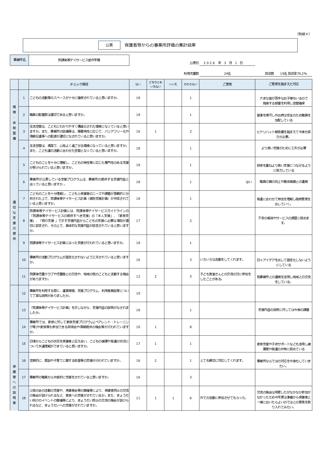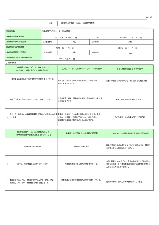 令和8年3月1日 保護者等からの事業所評価の集計結果