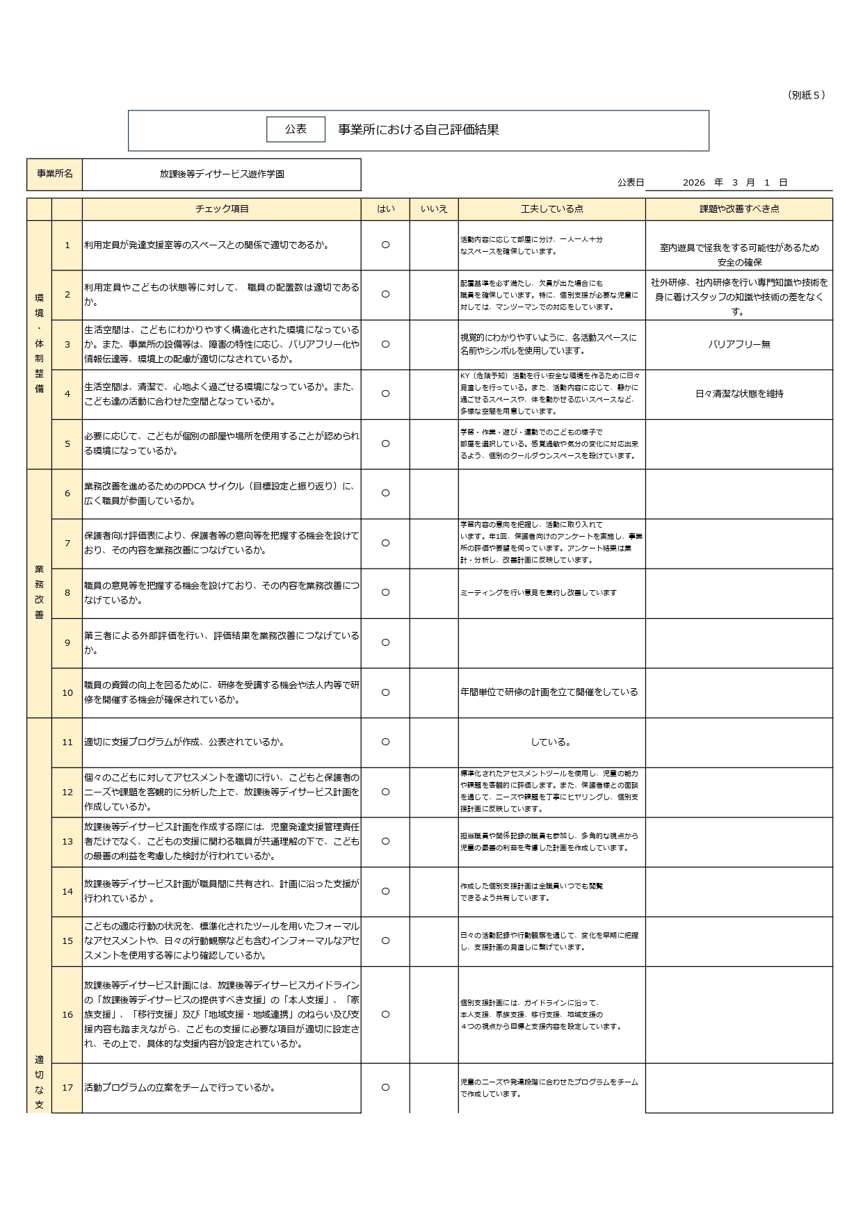令和8年3月1日 事業所における自己評価結果